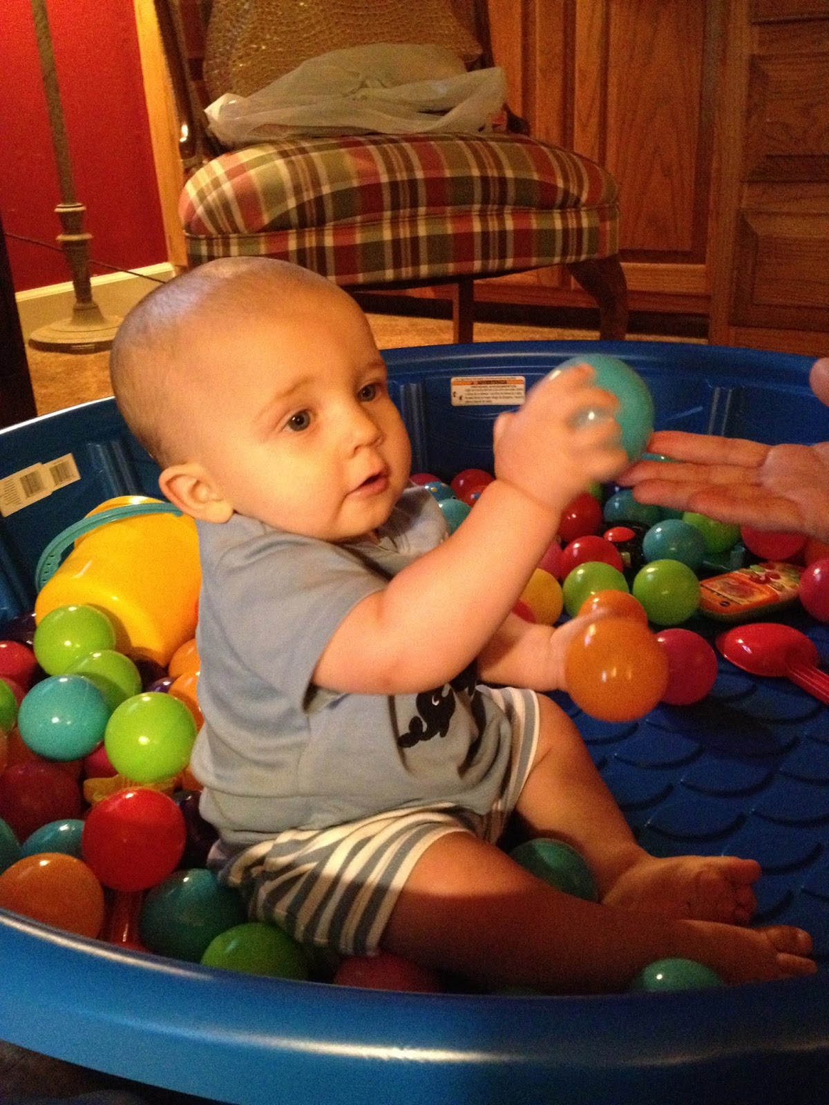 Grammie & Poppy surprised Hatch with a pool full of balls & new toys at their house!
